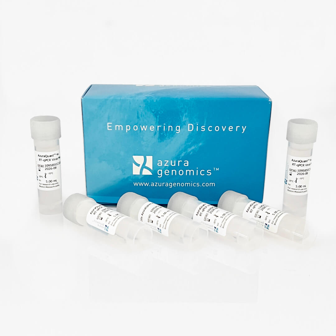 AzuraQuant™ 4x RT-qPCR Virus Mix is formulated for use with dual-labeled hydrolysis probes and is compatible with a wide range of fast and standard cycling conditions in singleplex and multiplex PCR. The advanced 4x formulation delivers robust performance with GC-rich and AT-rich templates and is resistant to many common PCR inhibitors.