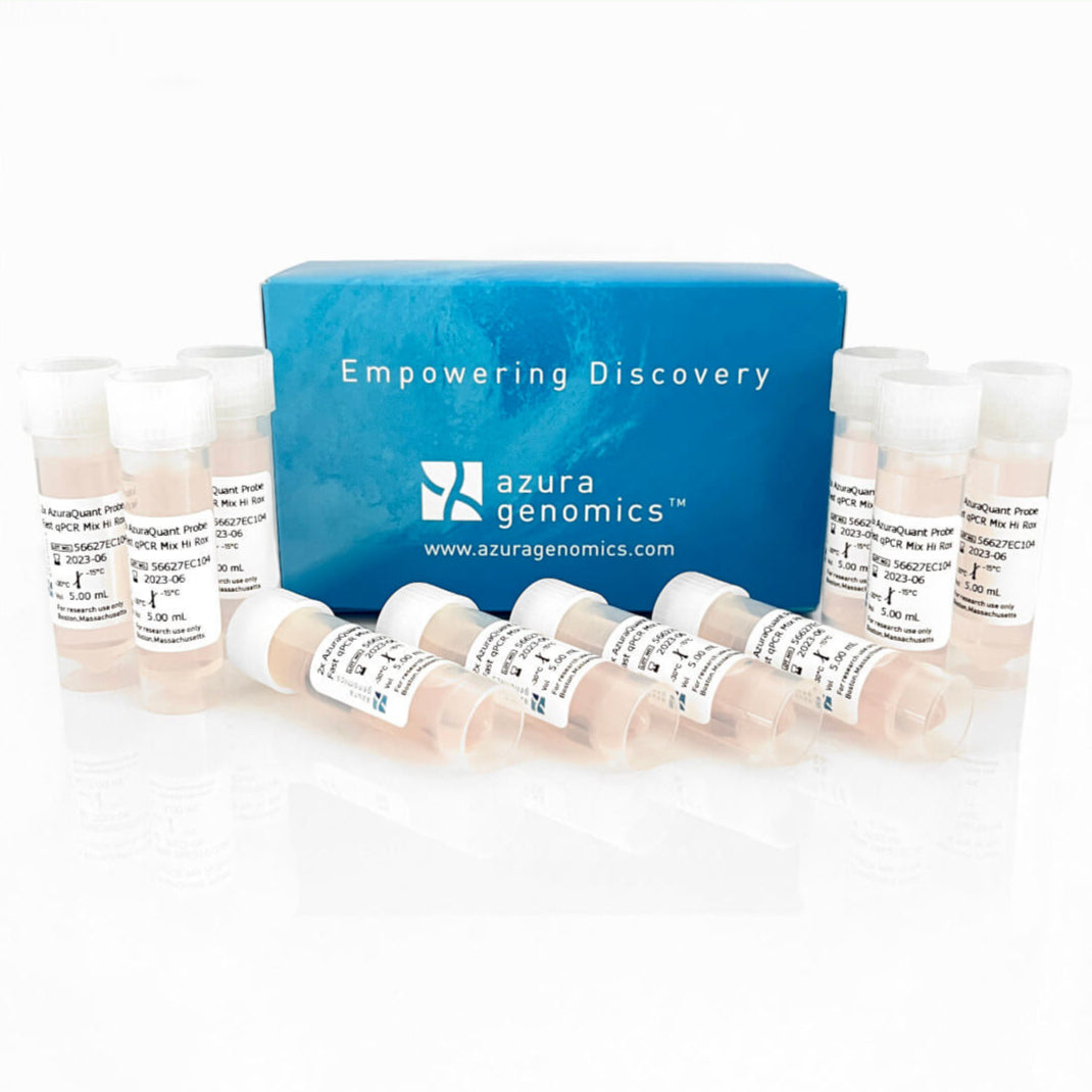The AzuraQuant™ Probe Fast qPCR Mix is comprised of Azura HS Taq DNA Polymerase and an optimized buffer chemistry providing robust real-time PCR and broad range detection for increased sensitivity, speed, and reproducibility. In addition, the 2x master-mix exhibits excellent sensitivity in complex multiplex reactions, in which multiple amplicons can be detected without a loss in efficiency. The AzuraQuant™ Probe Fast qPCR Mix requires little if any optimization and can be used to quantify any DNA templates including cDNA, genomic DNA, and low copy number viral sequences while providing resistance to many PCR inhibitors. The AzuraQuant™ Probe Fast qPCR Mix also combines rapid antibody-mediated hot-start activation and processive enzyme chemistry, making it compatible with both standard and fast instrument cycling programs.