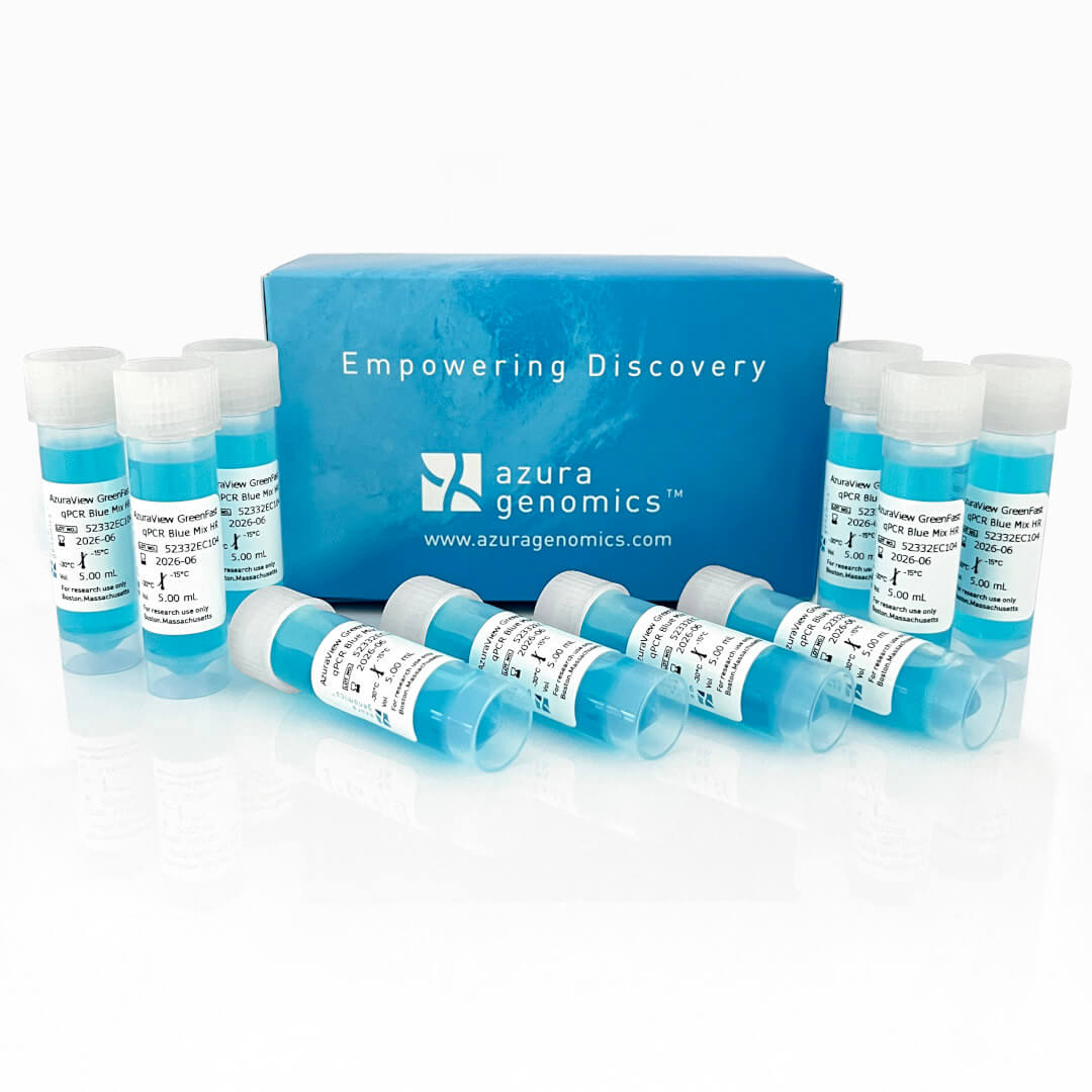 AzuraView™ Green Fast qPCR Blue Mix reliably quantifies any DNA template including cDNA, genomic DNA, and low copy number viral DNA sequences. The ready-to-use 2x master mix delivers an increased limit of detection with best-in-class sensitivity, and the inert blue dye provides an easy to see, easy to pipette format.