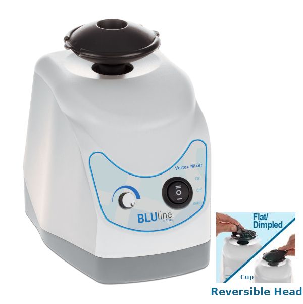 For the vortexing of single tubes, the cupped surface would generally be preferred. However, for applications requiring a flat/dimpled surface for mixing uniquely shaped vessels (or a handful of multiple test-tubes), the head can easily be flipped over and reattached in reverse orientation.