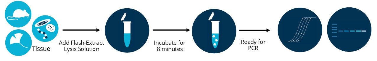 Flash-Extract™ Lysis Solution is a proprietary single-tube extraction solution which releases genomic DNA in only 8 minutes, ready for end-point PCR, real-time PCR with SYBR Green or TaqMan Probe based chemistry, or storage at - 20° C for subsequent use.