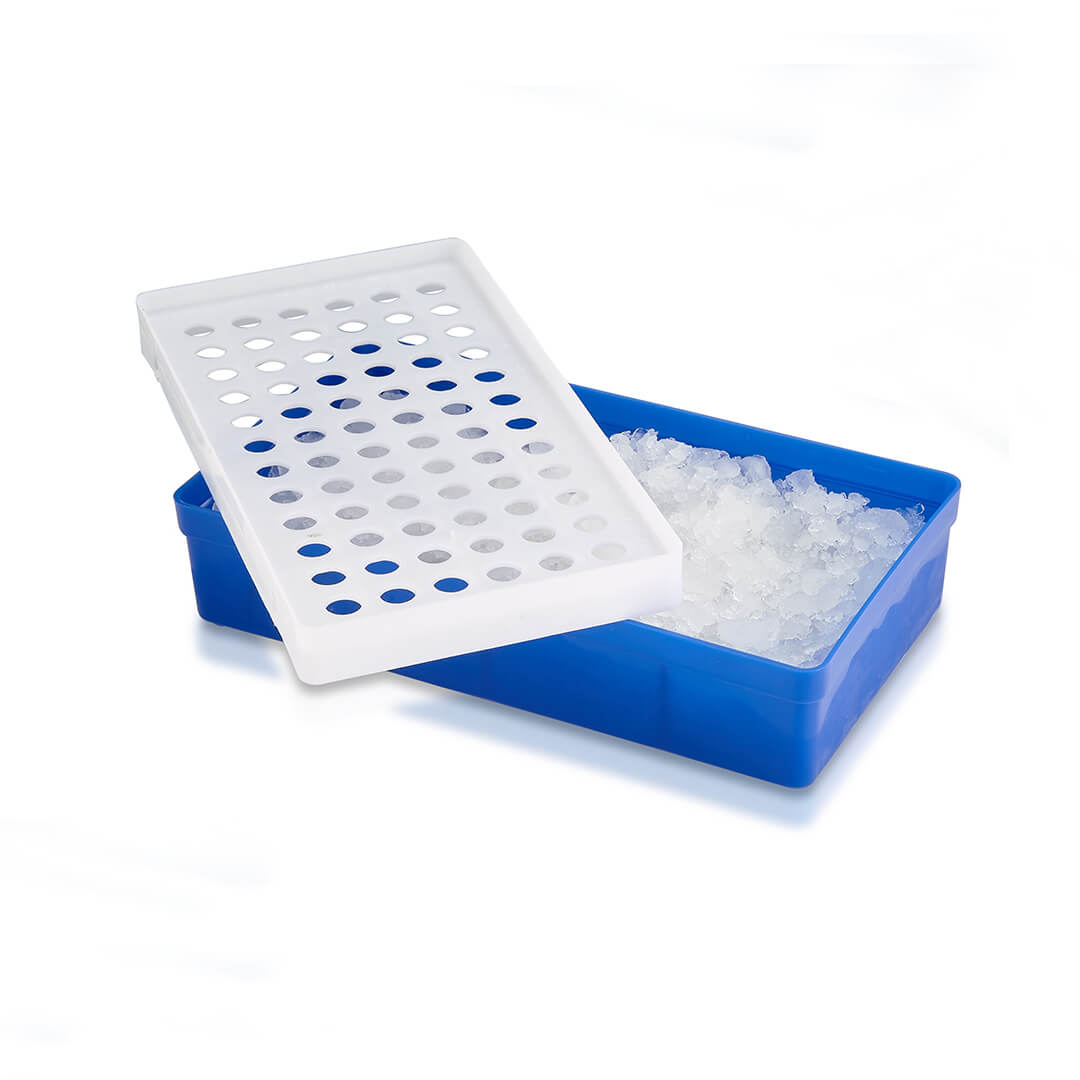 These new tube boxes have a removable white tube tray that can be kept filled with crushed ice or other temperature controlling materials. They also have a translucent cover. Temperature sensitive samples and assays in microtubes can be processed with an extra degree of temperature stability. Suitable for use with screw cap or snap cap microtubes from 0.5 mL to 1.5/2.0 mL Supplied 6 boxes per pack.