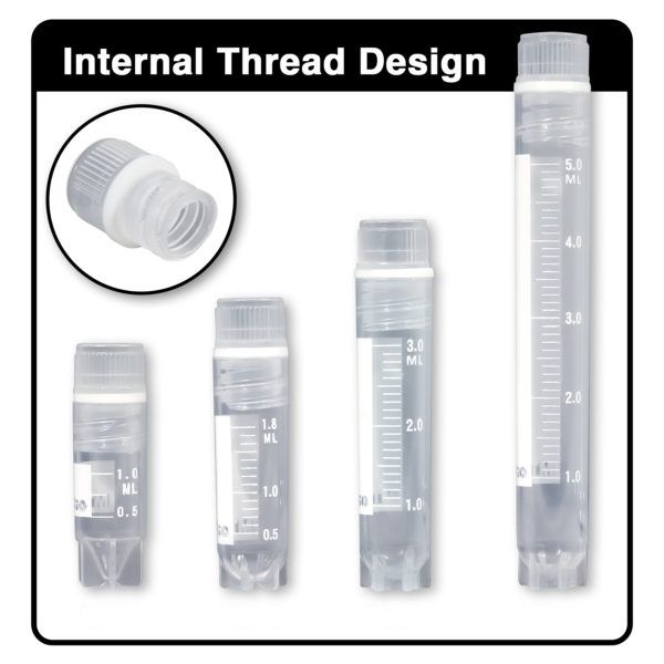 These thick-walled tubes are outfitted with silicone O-rings that allow them to maintain their seal at temperatures as low as -196°C. Sterilized by gamma irradiation, our cryogenic vials are designed to hold, store and preserve biological materials for days, weeks, years, or decades. The self-standing starfoot base mates perfectly with an included rack so that one hand is all that is need to install and remove caps.