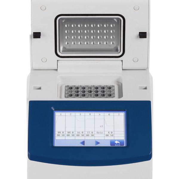 Operation of the thermal cycler is controlled from the large, full color, touch screen. Icon driven menus allow users to get running quickly. Programming is extremely simple and includes options for time and temperature increment/decrements, adjustable ramp rates, and an auto pause and restart functions. More than 100 typical programs can be stored in memory and easily recalled. After a run, samples can be held at 4°C. An on-screen report is also available at the completion of a run.